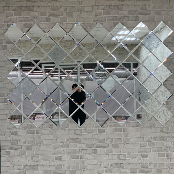 Использовалась серебристая зеркальная плитка формы "вытянутый ромб".
