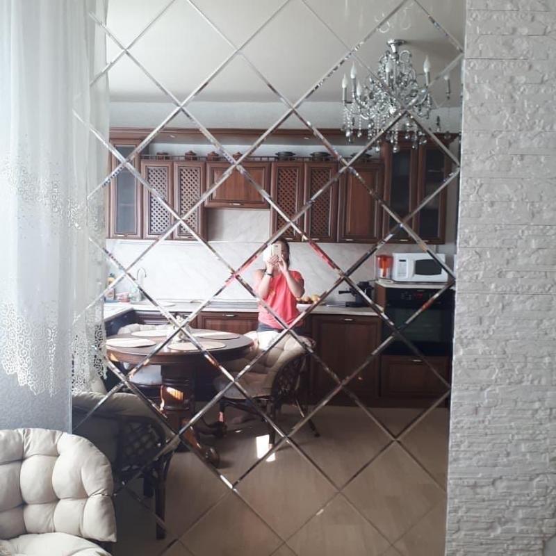 Использована зеркальная плитка вытянутый ромб размерами 20х34.